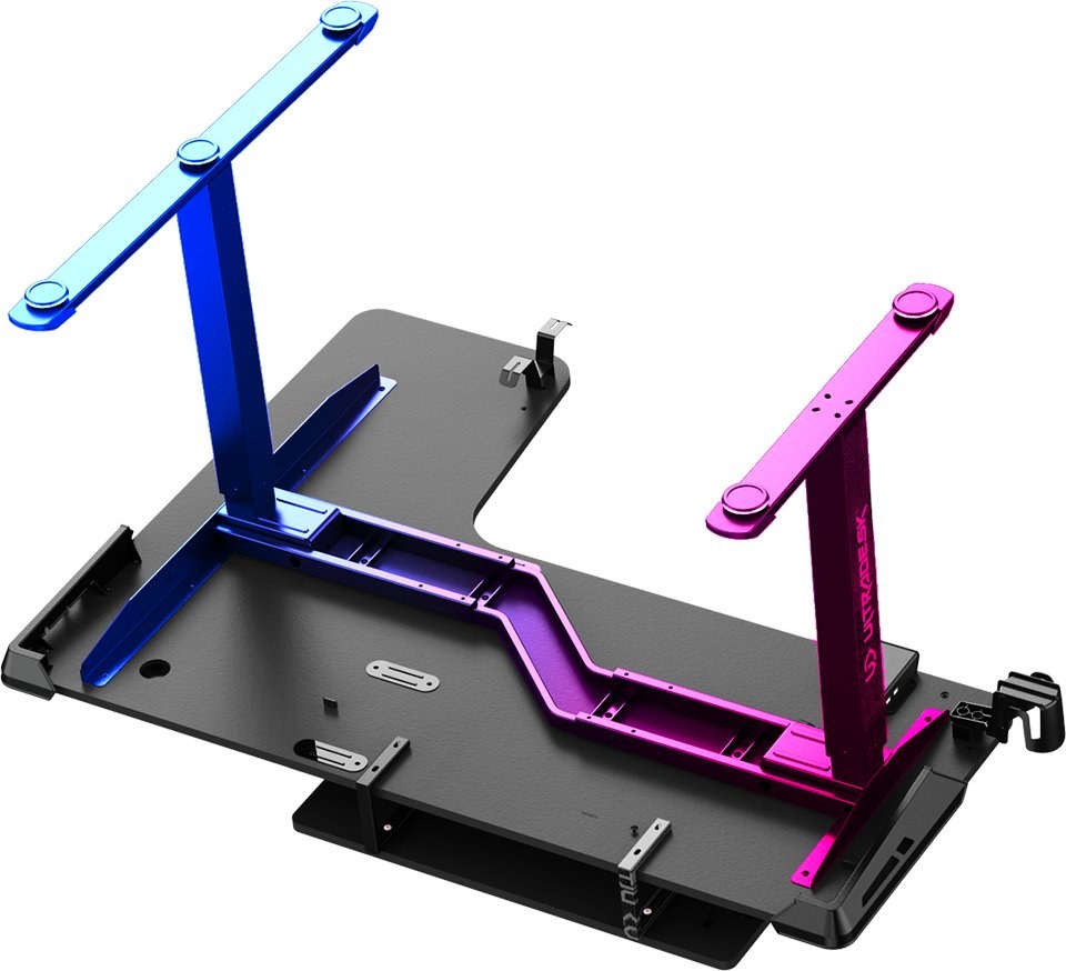 Nastaviť sa dajú až dve rôzne výšky - do pamäte panela môžete uložiť až dve rôzne výšky a nastavovať ich iba stlačením tlačidla. O všetko sa stará špeciálny procesor , ktorý zaručí prvotriednu synchronizáciu oboch motorov. Panel je nainštalovaný na pravej strane pod prednou hranou - už nikdy nemusíte vstávať z vašej stoličky. Ovládací panel je vybavený USB portami, do ktorých sa dajú zapojiť vaše herné doplnky, nabíjačky a RGB podsvietenie tohoto stola.