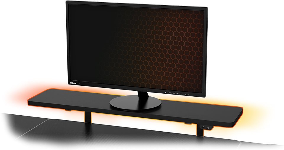 Ultradesk sa snaží vyhovieť všetkým potrebám hráčov a tak prináša ergonomickú policu pre monitor. Pre všetky čo preferujú mať monitor umiestnený vyššie než je pracovná plocha je tento stôl najlepšou voľbou. Táto polica umožňuje umiestniť monitor o 13cm vyššie než je vaša pracovná plocha. Rozmery police sú 80 x 20 cm a vďaka tomu je možné na policu uložiť aj menšie počítačové príslušenstvo. Všetko je pevne pripojené ku hornej časti stola a bez problémov unesie aj váhu ťažších monitorov.