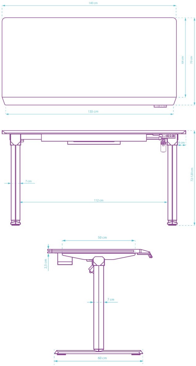 Výškové nastavenie: Elektrické, rozsah 72–120 cm