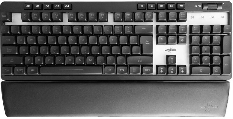 - herná klávesnica s transparentným povrchom, podsvietením a polstrovanou podložkou pod zápästie