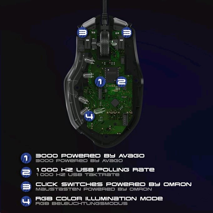 Vlastnosti:- prémiová herná myš s RGB podsvietením pre náročných hráčov