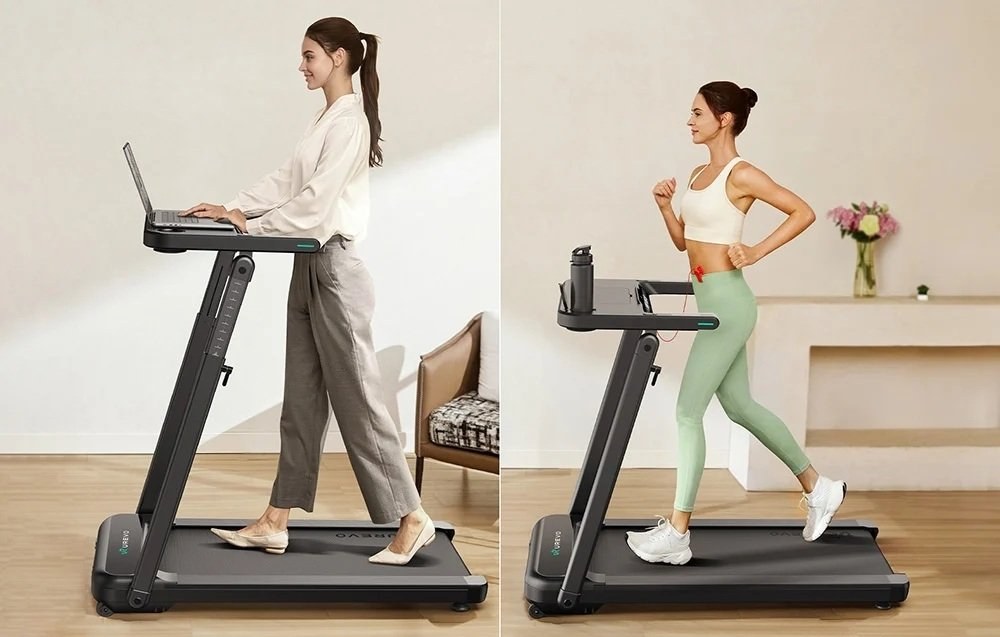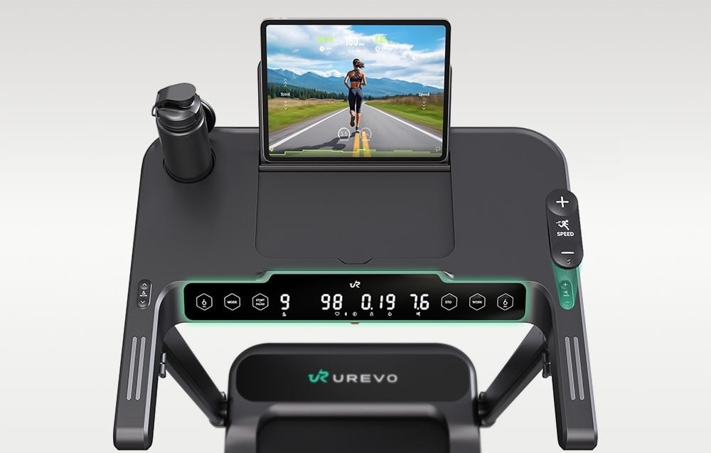 UREVO Foldi 3S Smart je skladací elektrický bežecký pás určený na domáce použitie, ktorý vám umožní nielen cvičiť, ale aj pohodlne používať notebook alebo tablet počas chôdze. Integrovaná pracovná plocha sa dá výškovo nastaviť od 90 do 120 cm. Zariadenie ponúka automatický sklon v 9 úrovniach, rýchlosť až 12 km/h, tichý motor s výkonom 0,75 HP a 8-bodový systém odpruženia. Aplikácia UREVO SmartCoach umožňuje sledovať vaše pokroky a plánovať tréningy a kompaktný dizajn s funkciou rýchleho zloženia uľahčuje skladovanie aj v malom priestore.Trénujte podľa svojich podmienok