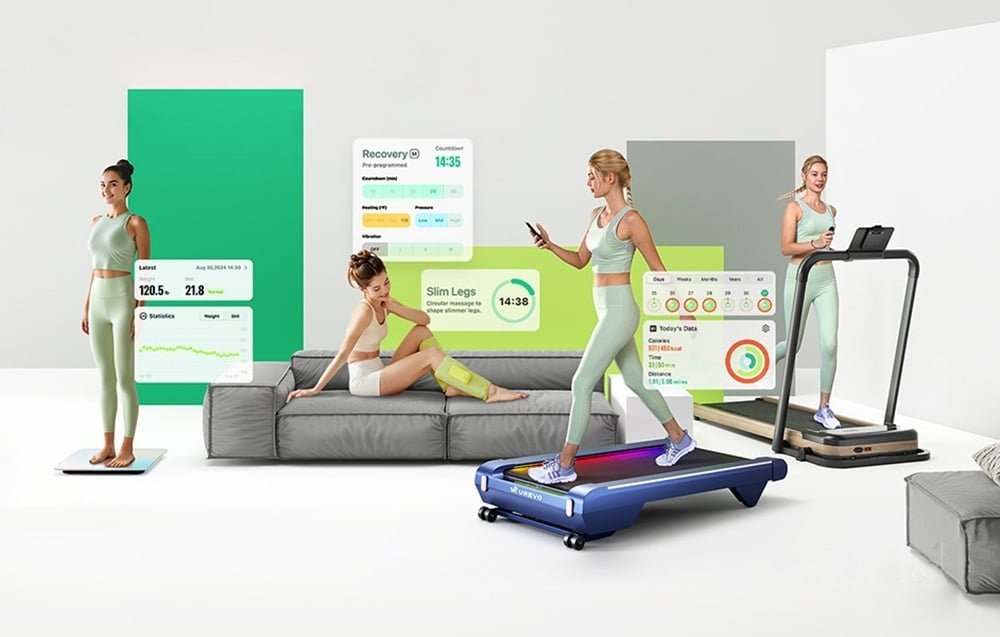 Aplikácia UREVO SmartCoach, ktorá je kompatibilná so systémami iOS a Android, umožňuje vytvárať personalizované tréningové plány a sledovať váš pokrok v reálnom čase. Všetky údaje - čas, vzdialenosť, rýchlosť, kalórie a úroveň sklonu - sa prehľadne zobrazujú na displeji smartfónu. Navyše sa aplikácia integruje s ďalšími zariadeniami UREVO, ako je váha alebo masážny prístroj, a ponúka ďalšie funkcie na podporu regenerácie a relaxácie. Je to komplexný nástroj, ktorý vám pomôže starať sa o svoju formu na bežeckom páse aj mimo neho.