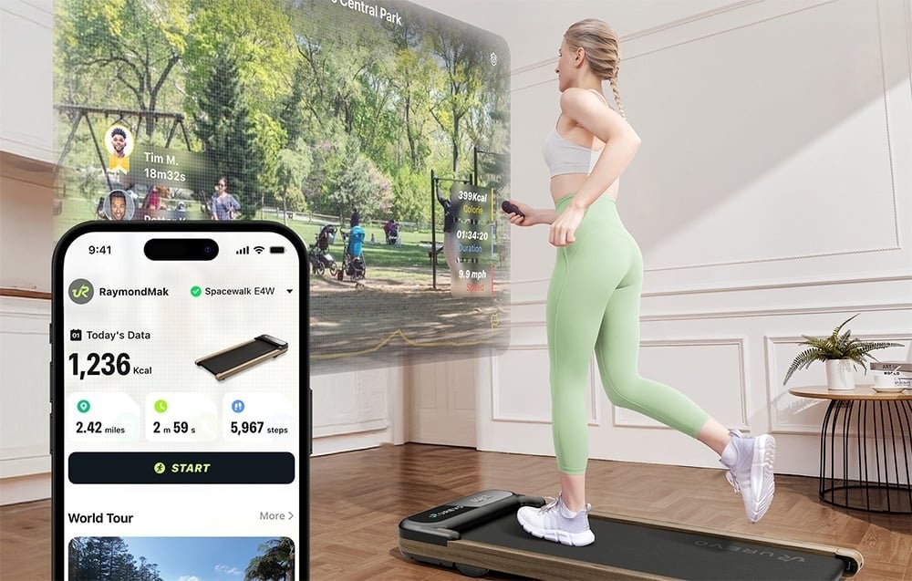 UREVO SpaceWalk E4W je moderný bežecký pás s chodiacou podložkou, ktorý dokonale spája eleganciu s praktickosťou. Vďaka svojmu drevodekoru a minimalistickému štýlu harmonicky zapadne do každého interiéru, či už domáceho alebo kancelárskeho. Vďaka svojmu kompaktnému dizajnu a tichej prevádzke je ideálny pre ľudí, ktorí chcú byť počas dňa aktívni bez toho, aby obetovali pohodlie vlastného priestoru.Elegantný a priestorovo úsporný dizajn