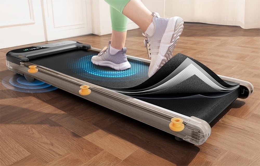 Model UREVO SpaceWalk E4W je navrhnutý s ohľadom na pohodlie a bezpečnosť používateľa. Bežecký pás má päťvrstvový bežecký pás s rozmermi 380 × 1020 mm, ktorý účinne znižuje nárazy a zaťaženie kĺbov. Okrem toho použitie vankúšov s medovou textúrou poskytuje lepšiu stabilitu a pružnosť kroku, chráni kolená a zvyšuje pohodlie počas dlhodobého používania.Vysoká odolnosť a robustná