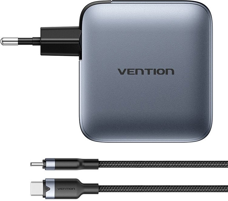 Vention nabíjačka, 3× USB-C, 1× USB-A (100 W/100 W/30 W/30 W), sivá, s káblom USB-C na USB-C, dĺžka 1 m, čierna