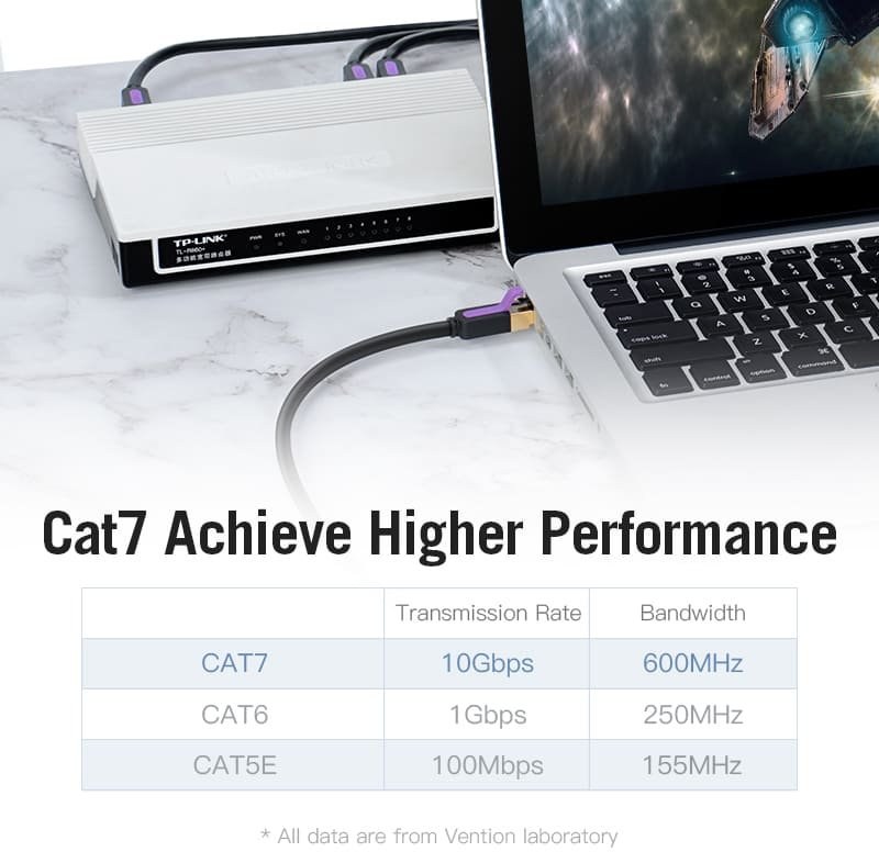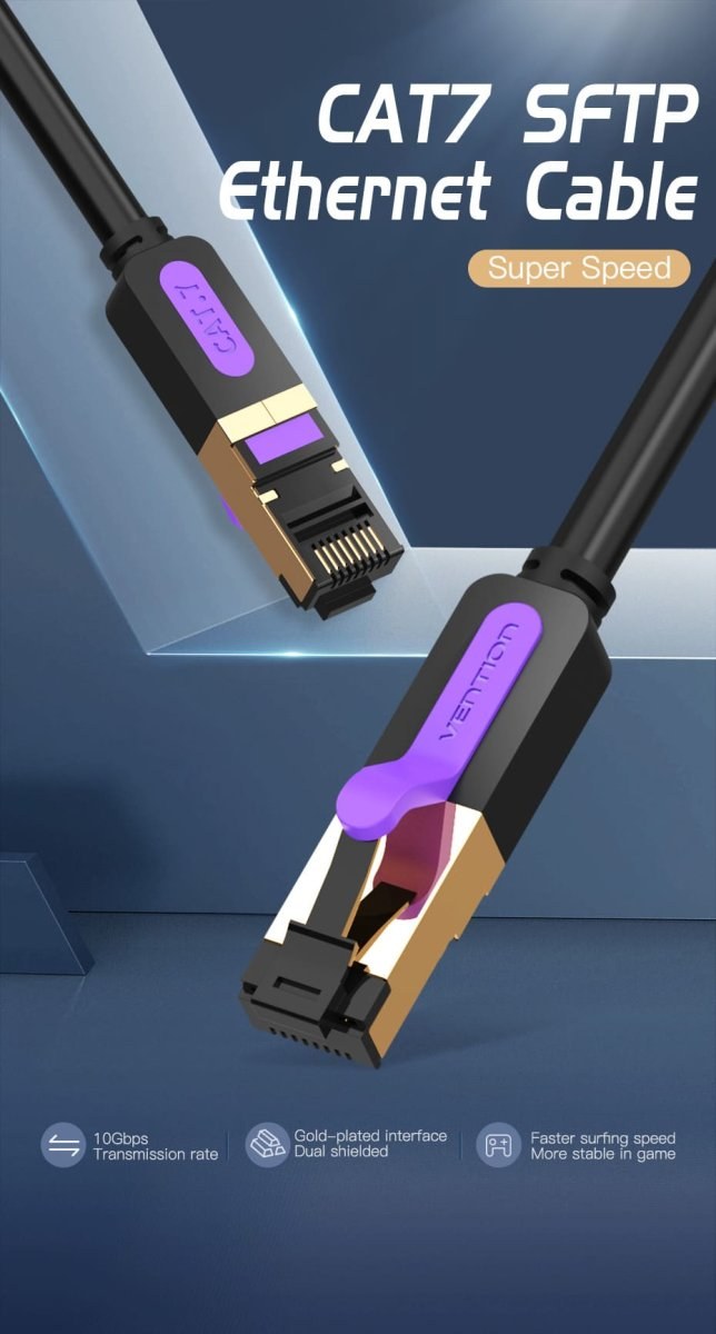 Vention patch kábel RJ45, cat.7, S-FTP, 3,0m, čierny