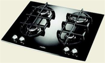 4 plynové horáky s poistkami STOP GAS, el. zapaľovanie horákov integrované v gombíku, 2 liatinové mriežky, tvrdené sklo - čierne