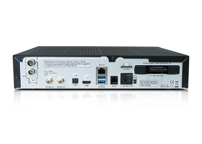 Je to první satelitní UHD přijímač s plnou podporou rozlišení 4K, označovaného také jako 2160p, nebo Ultra HD. Srdcem přijímače je dvoujádrový procesor ARM Dual Core 1,5 GHz (10.000 DMIPS) s výkonnou RAM pamětí 2GB a s dostatečně velkou Flash pamětí 4GB pro neomezené množství pluginů. Na přední straně je umístěný 3,5" TFT LCD displej s 262.0000 barvami - 18 bit, pod odklopným se nacházejí dvě UNI čtečky karet a jeden CI slot, spolu s USB 2.0 portem. HDMI 2.0 výstup s plnou podporu pro HVEC / H.265. Dva vestavěné satelitní tunery DVB-S2 typu FBC (Full band Capture), slot pro třetí tuner zůstává volný (možnost instalace DUAL DVB-S2, Combo DVB-T2/T/C). Na zadní straně se nachází šachta pro jednoduchou instalaci interního HDD/SSD o velikosti 2,5" (max. 10,5 mm)
