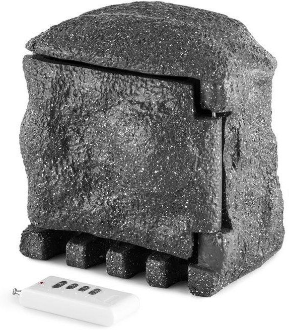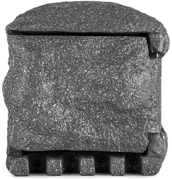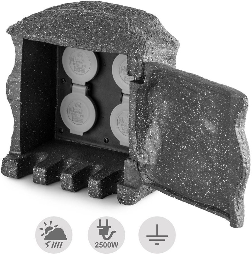 Waldbeck Power Rock Remote, tmavá sivá, záhradná zásuvka, 4-itý rozdeľovač, 3 m, diaľkové ovládanie, skalaUmelý dekoračný kameň z umelého kameňa s pevne nainštalovanou štvoritou rozdeľovacou zásuvkou, magnetickými sklápacími dvierkami a káblovými priechodmi.