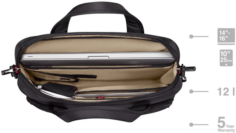 - Taška Wenger Altair Brief 14-16", odnímateľný ramenný popruh, dokumentácia výrobcu.