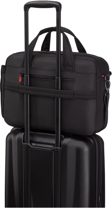 taška na notebook, unisex, 14", 16", 3 vrecká, materiál polyester, šírka 42 cm, výška 29 cm, hĺbka 15 cm, hmotnosť 0,86 kg, rukoväť, popruh na rameno, zadný pás na kufor, farba čiernaZobraziť viac
