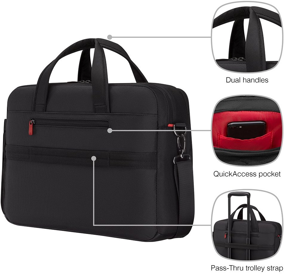 taška na notebook, unisex, 16", 3 vrecká, materiál polyester, šírka 45 cm, výška 31 cm, hĺbka 17 cm, hmotnosť 0,98 kg, rukoväť, popruh na rameno, zadný pás na kufor, farba čiernaZobraziť viac