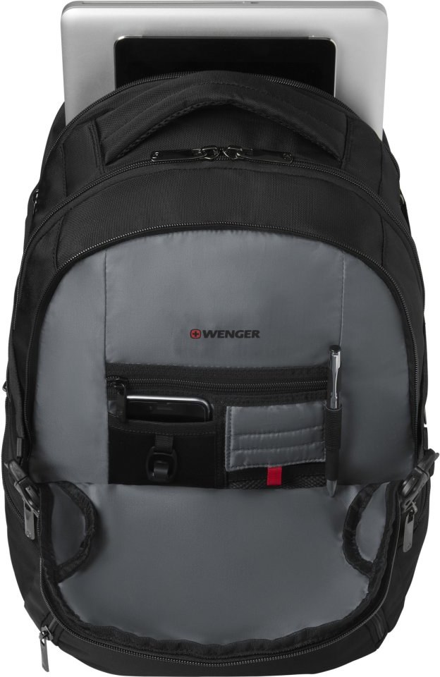 batoh pre notebook, unisex, 16", 7 vreciek, materiál polyester, šírka 33 cm, výška 46 cm, hĺbka 25 cm, hmotnosť 1,15 kg, rukoväť, farba čiernaZobraziť viac