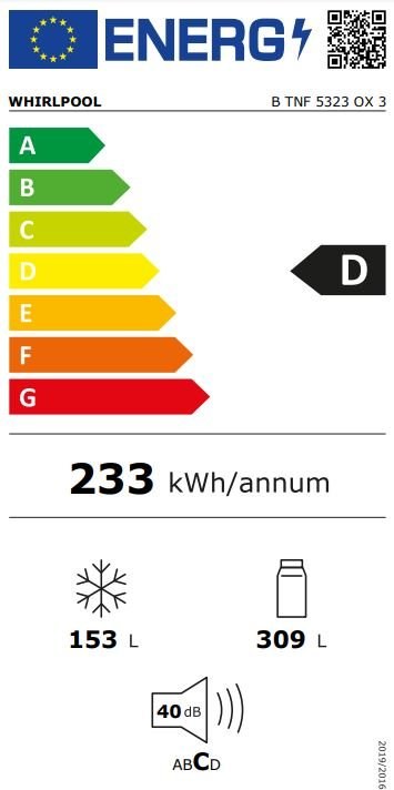 Whirlpool BTNF5323OX3, chladnička kombinovaná
