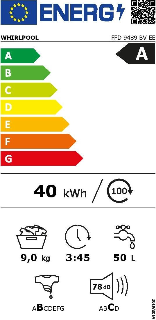 Funkcia Steam Refresh regeneruje sviežosť vášho oblečenia a zabraňuje zbytočnému praniu. Oblečenie je opäť pripravené na nosenie už za 20 minút. Práčka vytvára prúd pary, ktorý preniká do do vlákien, odstraňuje nepríjemné pachy, uvoľňuje vlákna a vyhladzuje záhyby.Super energetická účinnosť: A