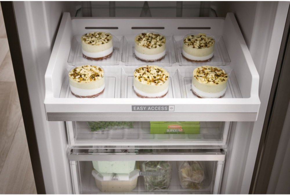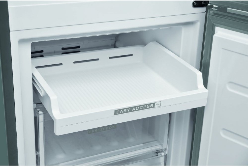 - LED osvetlenie, prestaviteľné sklenené poličky, 2 zásuvky v mrazničke + 1 výsuvná polička pre rýchlozmrazovanie, zameniteľné otváranie dverí