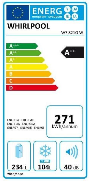 Whirlpool W7 821O W je kombinovaná chladnička v energetickej triede A++