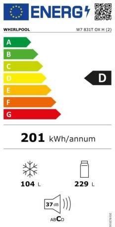 Whirlpool W7 831T OX H je kombinovaná chladnička v energetickej triede D