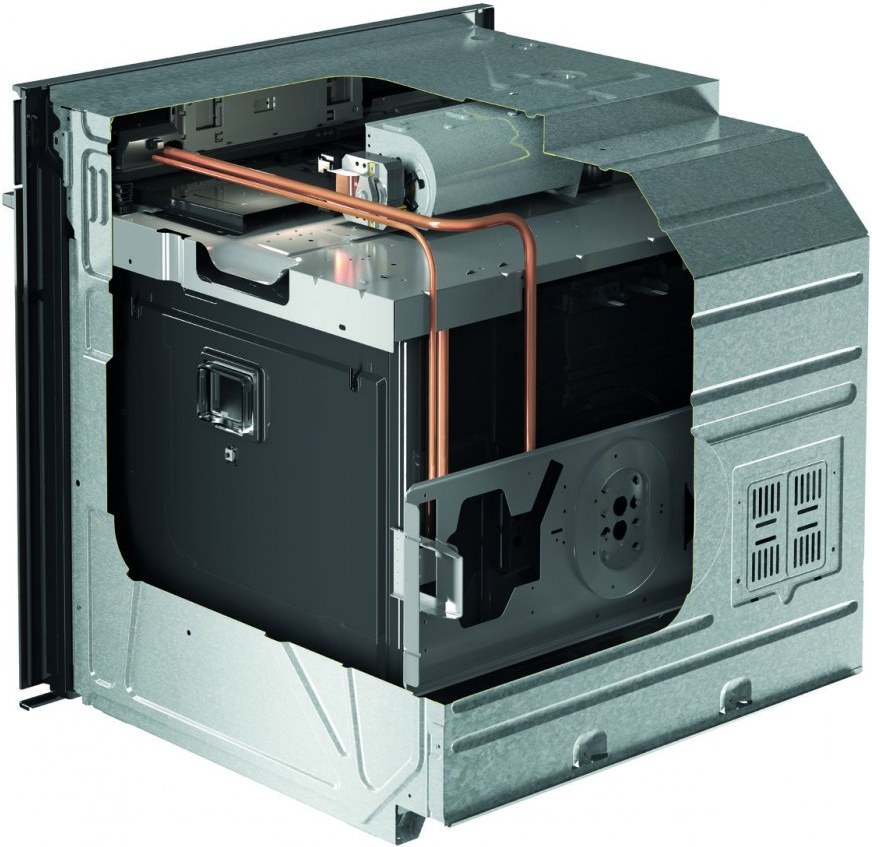 Rúra je vybavená zásobníkom vody s vlastným ohrevom pre výrobu a distribúciu pary pre varenie v 100% pare a tiež pre pečenie s podporou pary pre získanie šťavnatého a zároveň chrumkavého jedla.