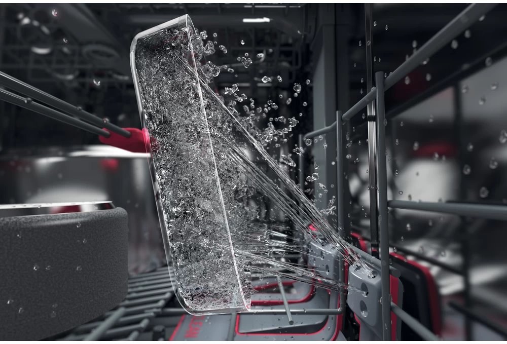 Výkonné vodné trysky v zadnej časti umývačky zabezpečia najlepšie výsledky umývania aj pri najodolnejšom znečistení. Inteligentné senzory snímajú úroveň znečistenia a prispôsobia tomu tlak vody.Príborová zásuvka