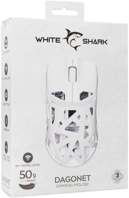 White Shark Dagonet, herná bezdrôtová myš, 2.4Ghz+BT, biela