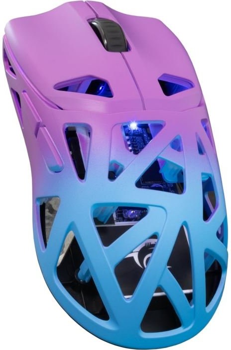 myš, herná bezdrôtová, symetrická, bluetooth a USB prijímač, optický senzor, podsvietená, 6 tlačidiel, max. citlivosť 24000DPI, modrá-fialováZobraziť viac