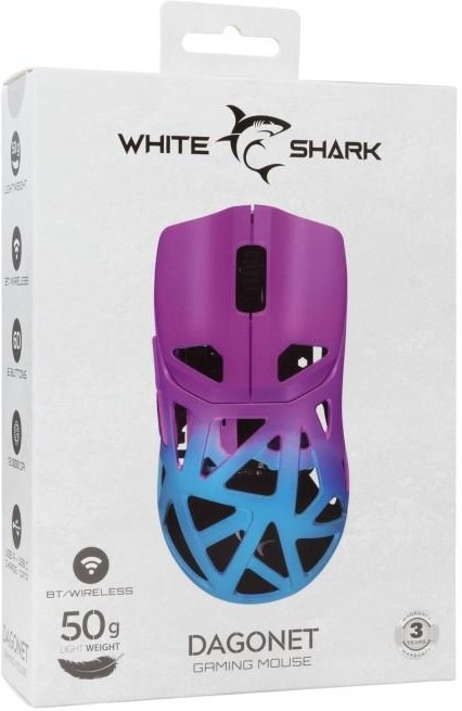 White Shark Dagonet, herná bezdrôtová myš, BT+ 2,4GHz, modrá, fialová
