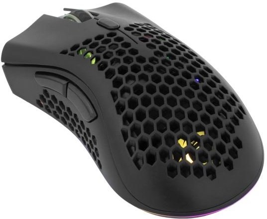 myš, herná, USB bezdrôtový prijímač, optický senzor, podsvietená, 6 tlačidiel, max. citlivosť 10000DPI, čiernaZobraziť viac