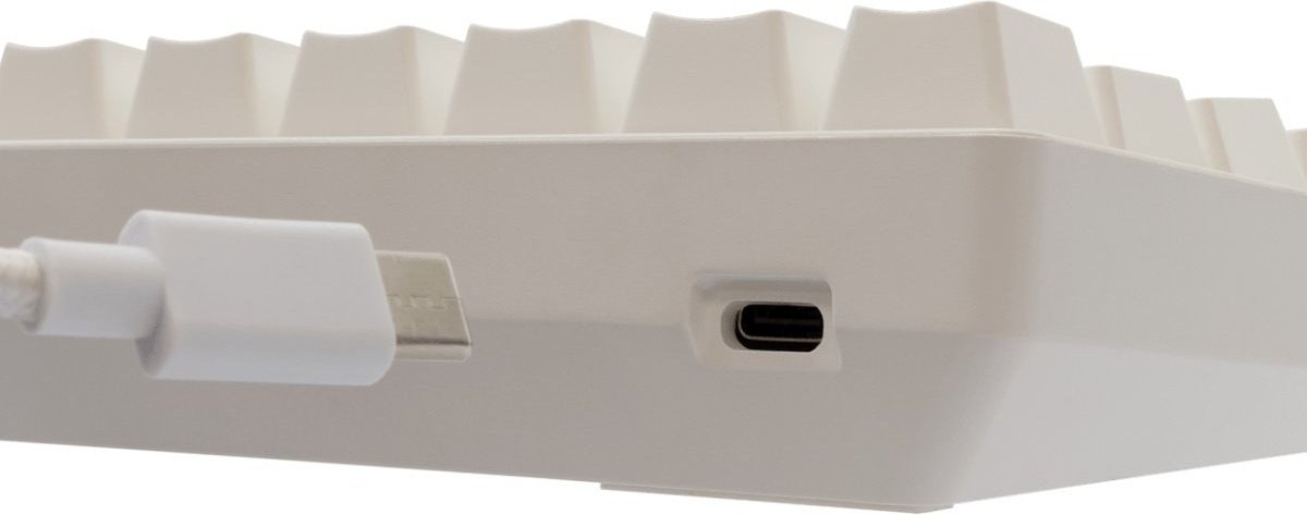 klávesnica, herná mechanická, USB kábel, US/UK - anglické, podsvietená, tichý klik (silent click), spínače brown (hnedé), bielaZobraziť viac
