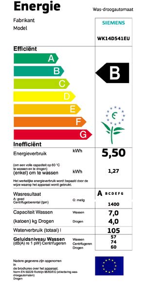spotreba energie pranie/sušenie: 5.5 kWh, spotreba vody pranie/sušenie: 105 l