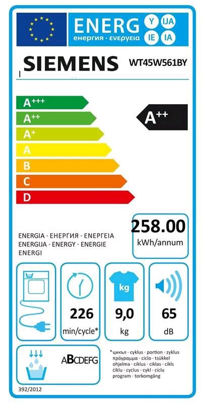 Ročná spotreba energie 258.0 kW h/rok, na základe 160 cyklov v štandardnom programe bavlna s plnou a polovičnou náplňou, a spotreba v úsporných programoch. Skutočná spotreba je závislá na spôsobe použitia spotrebiča.