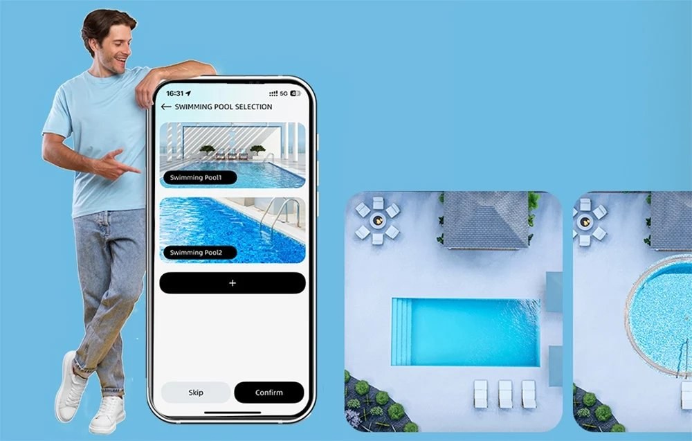 Pomocou aplikácie WYBOT si jednoducho nastavíte tvar bazéna, trasu a režim čistenia podľa vlastných potrieb. Model C1 Max ponúka aj manuálne ovládanie pre presné nasmerovanie robota. Čistenie je tak plne prispôsobiteľné a pohodlné.