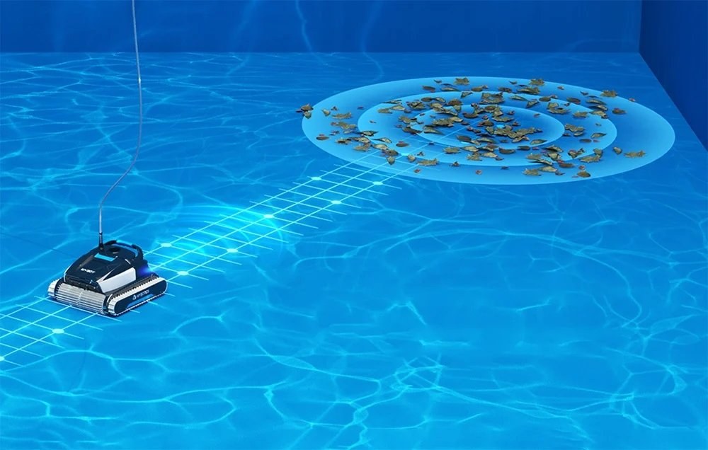 Robot sa pohybuje po bazéne optimálne vďaka pokročilej navigácii s 95 % pokrytím povrchu. Mobilná aplikácia umožňuje výber režimu aj ovládanie v reálnom čase.