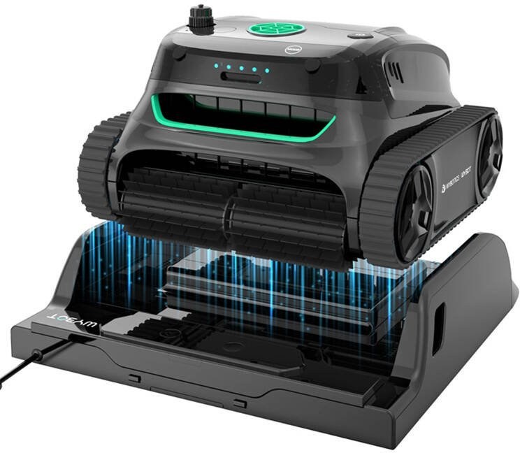 Wybot S2 Pro je prvý robot s podvodným bezdrôtovým nabíjaním bez rizika poškodenia portov. Pri nízkej batérii sa automaticky vráti do dokovacej stanice. Zabezpečuje nepretržitú prevádzku bez nutnosti ručného zásahu.