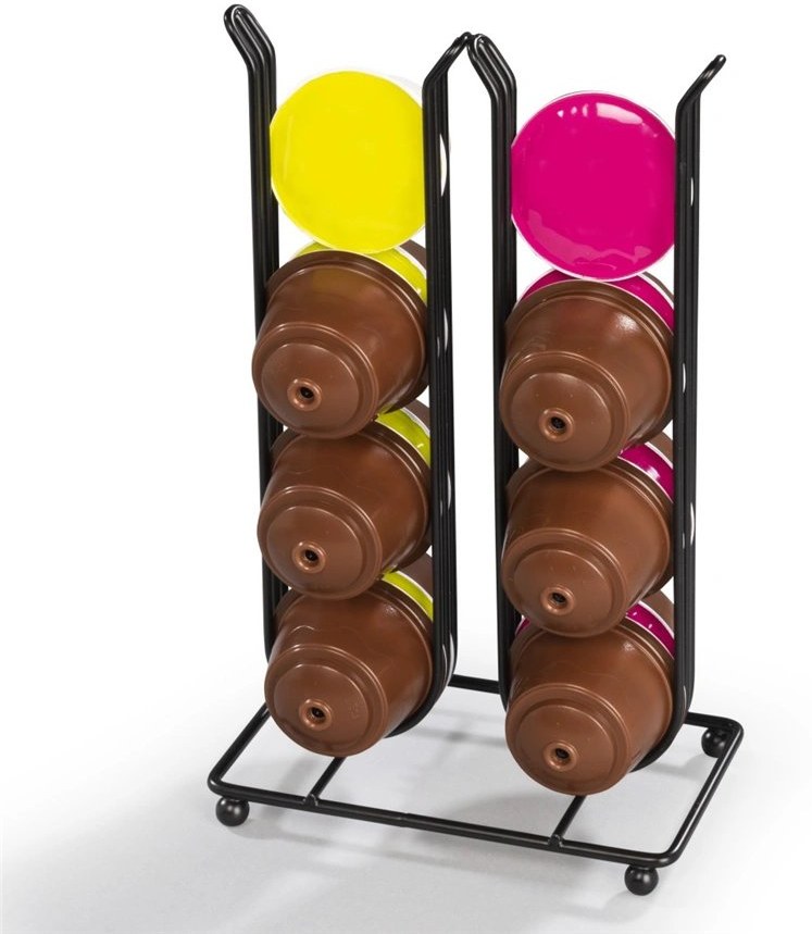 - elegantný drôtený stojan pre usporiadané a prehľadné uloženie kávových kapsúl- vhodný pre kapsuly značky Dolce Gusto a Nespresso Vertuo, prípadne pre kapsuly podobnej veľkosti, napr. Caffé Tiziano Bonini, Gimoka