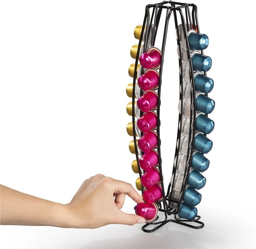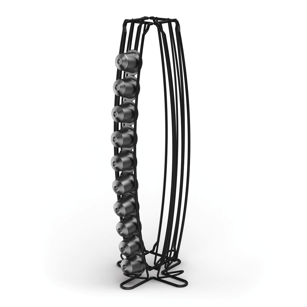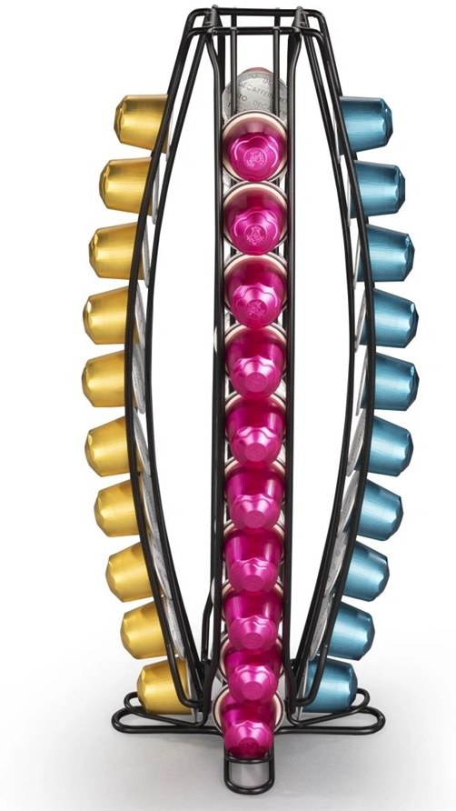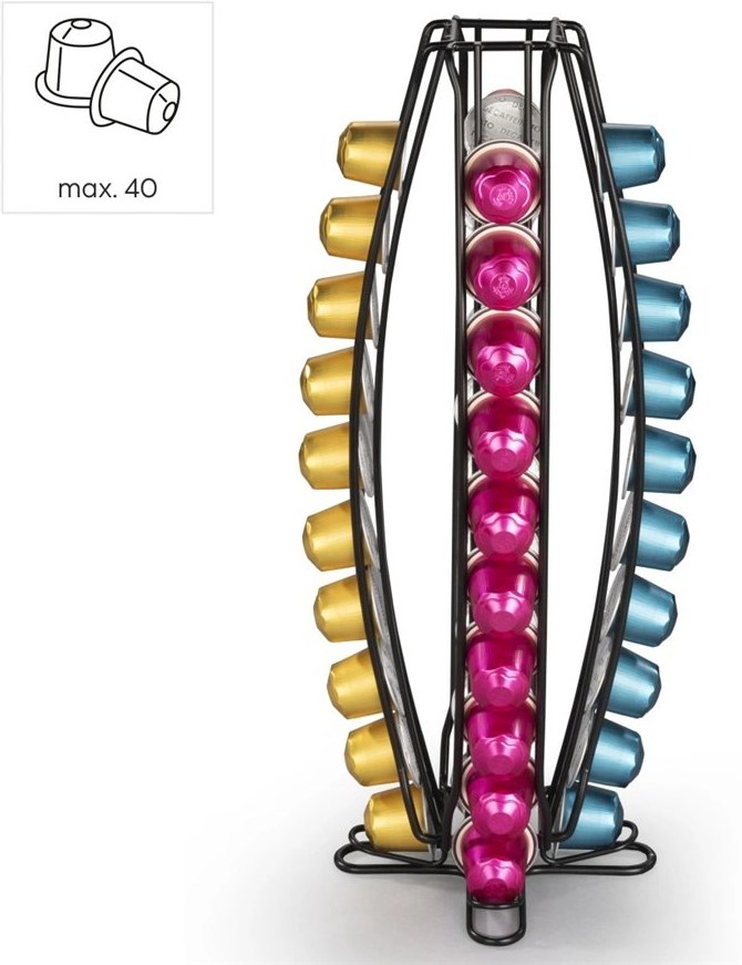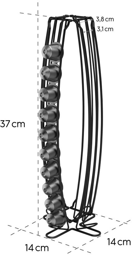 - elegantný drôtený stojan pre usporiadané a prehľadné uloženie kávových kapsúl- vhodný pre kapsuly značky Nespresso, prípadne pre kapsuly podobnej veľkosti, Gourmesso, Cialdissima a Dallmayr capsa