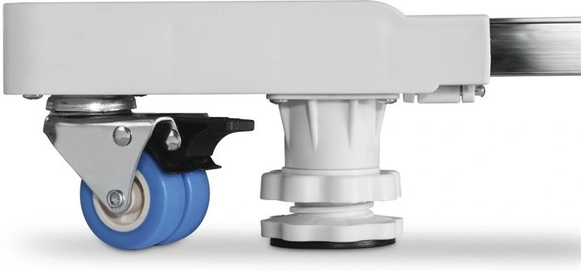- štyri otáčacie kolieska, každé s brzdou, pre pohodlné presúvanie a bezpečné postavenie spotrebiča, takže spotrebič môžete používať, aj keď je umiestnený na podstavci