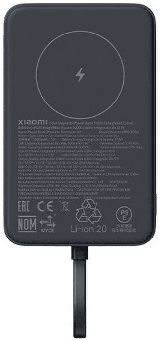 Podporuje nabíjanie zariadení využívajúcich protokoly PD2.0, PD3.0, PPS, QC2.0, QC3.0, BC1.2 a Apple 2.4. Zoznam kompatibilných zariadení nájdete na: https://www.mi.com/global/product/xiaomi-33w-magnetic-power-bank-10000-integrated-cable/Technické parametre