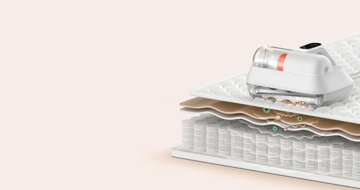 Patentovaná elektrická valčeková kefa je poháňaná motorom s vysokým krútiacim momentom, ktorý dosahuje vysokú frekvencia až 4800 kmitov za minútu. Jej špirálovitý tvar sa postará o dôkladné a šetrné odstraňovanie prachu a roztočov, aj bez poškodenia tkanín.97% účinnosť odstraňovania roztočov a baktérií UV žiarením