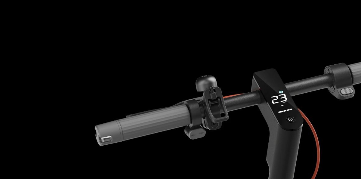 Displej je nastavený v užívateľsky prívetivom uhle a umožňuje jazdcovi počas jazdy sledovať rýchlosť, zostávajúcu energiu batérie, smerové svetlá a stav elektrokolobežky.Tri rýchlostné režimy na dosah ruky