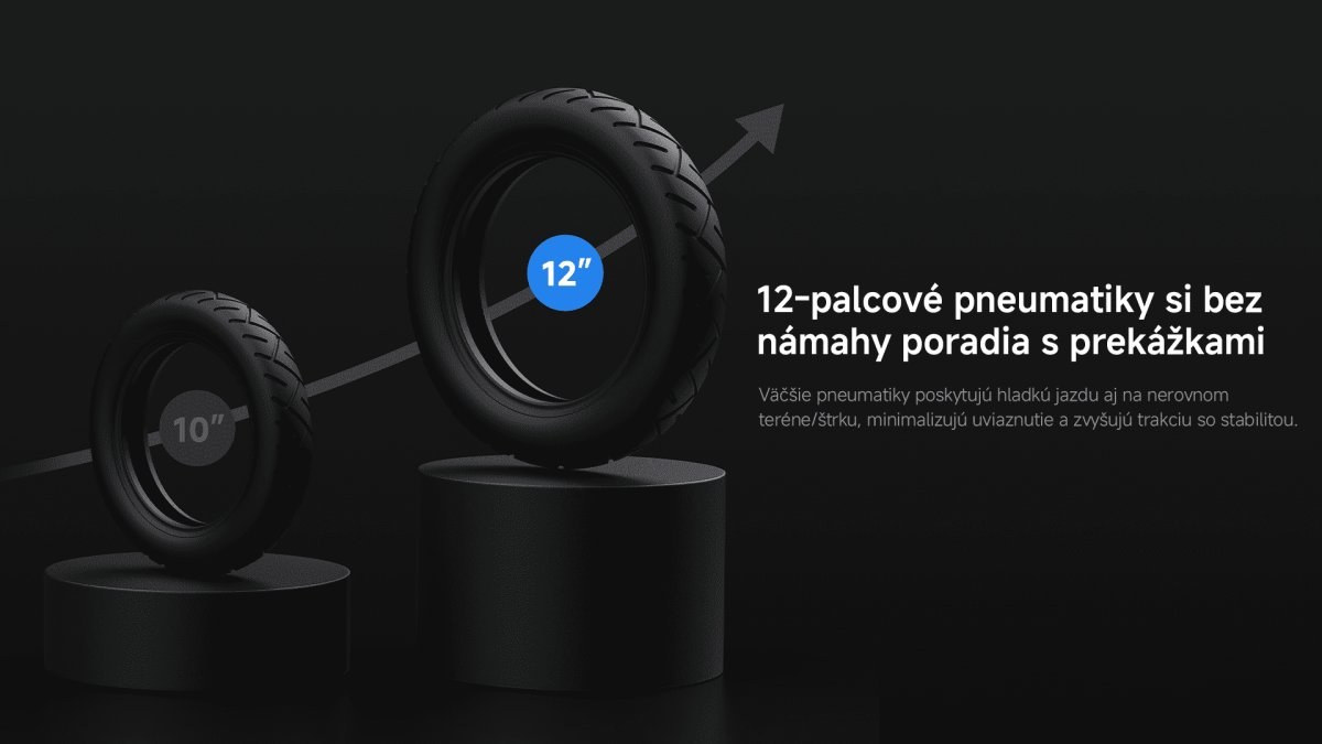 Prekonávajte každodenné prekážky bez problémov. Väčšie pneumatiky poskytujú plynulú jazdu aj v náročnom teréne, štrkovitých a hrboľatých cestách, vďaka čomu znižujú riziko uviaznutia a výrazne zvyšujú komfort, stabilitu a celkovú trakciu kolobežky.Vylepšené tlmenie nárazov a vibrácii