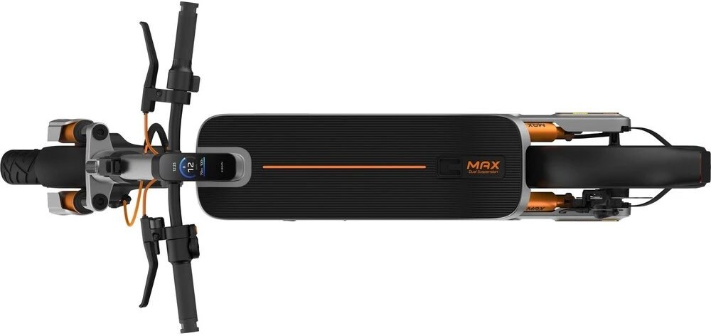 Nové 12" pneumatiky prinášajú výrazne lepšiu priľnavosť, stabilitu a lepšie tlmenie nerovností, vďaka čomu si poradia aj s náročným terénom.Pružinové odpruženie predného aj zadného kolesa