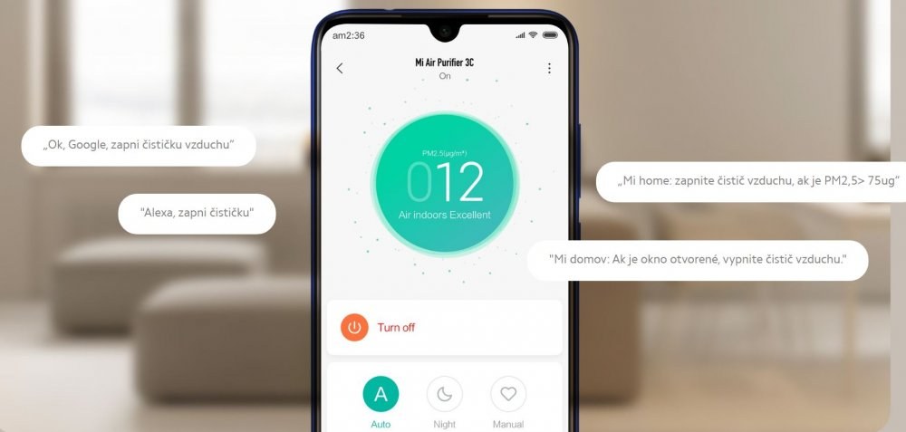 Vďaka aplikácii Mi Home / Xiaomi Home môžete pomocou svojho smartfónu neustále sledovať kvalitu vzduchu v interiéri, diaľkovo ovládať čističku vzduchu, nastavovať časy zapnutia a vypnutia a prepojiť sa s ostatnými produktmi Mi Smart. Podporuje Google Assistant aj inteligentný systém Alexa AI pre ľahké hlasové ovládanie.