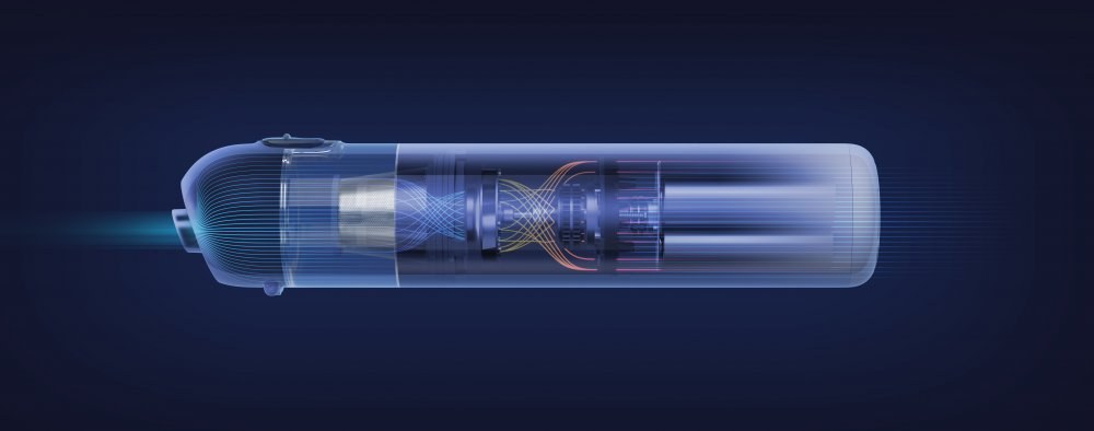 Aj napriek malému telo tento pomocník s výkonom 40 W dosahuje sací tlak až 6 000 Pa. Bezkartáčový motor a priamy dizajn s dvojitým prieduchom znižuje straty energie a zlepšuje účinnosť čistenia. Funkcia rýchleho spustenia a zastavenia zabráni tomu, aby pri vypnutí stroja zostal prach v tryske.Až 30 minút vysávania
