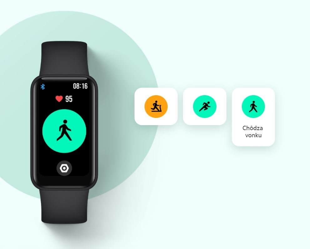 väčší prehľadnejší displej zobrazí všetky potrebné notifikácie a informácie o zdraví, sledovanie hladiny SpO2