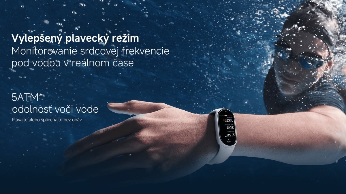 Vďaka vylepšenému deväťosovému snímaču a technológii rozpoznávania záberov, vylepšenej umelou inteligenciou, dosahuje 96% presnosť pri sledovaní počtu okruhov. Inteligentný náramok Xiaomi, teraz prvýkrát podporuje aj monitorovanie srdcovej frekvencie počas plávania a prináša komplexnejšie údaje pre plavecký tréning. *Náramok nie je vhodné používať v horúcej sprche, horúcich prameňoch, saunách alebo pri rýchlych vodných športoch.Pokročilé monitorovanie spánku