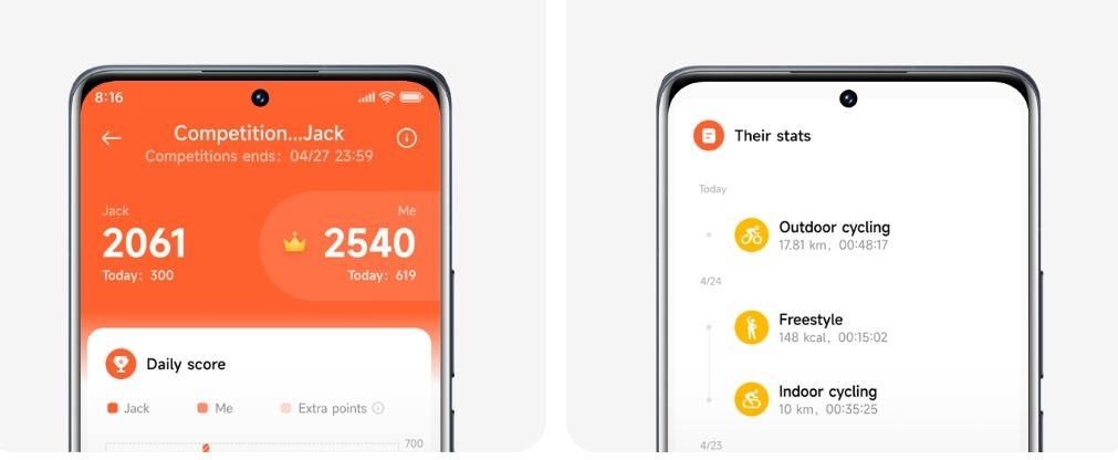 Nová fitness funkcia „Súťaž“ oficiálne pristála v aplikácii Xiaomi Fitness APP, môžete si nastaviť denné cvičebné ciele a tiež si môžete vybrať a pozvať svojich priateľov, aby súťažili o cvičebné úspechy: denný počet krokov, spálené kalórie, cvičenie. čas atď. Zostaňte fit, zdraví a bavte sa so svojimi kamarátmi!