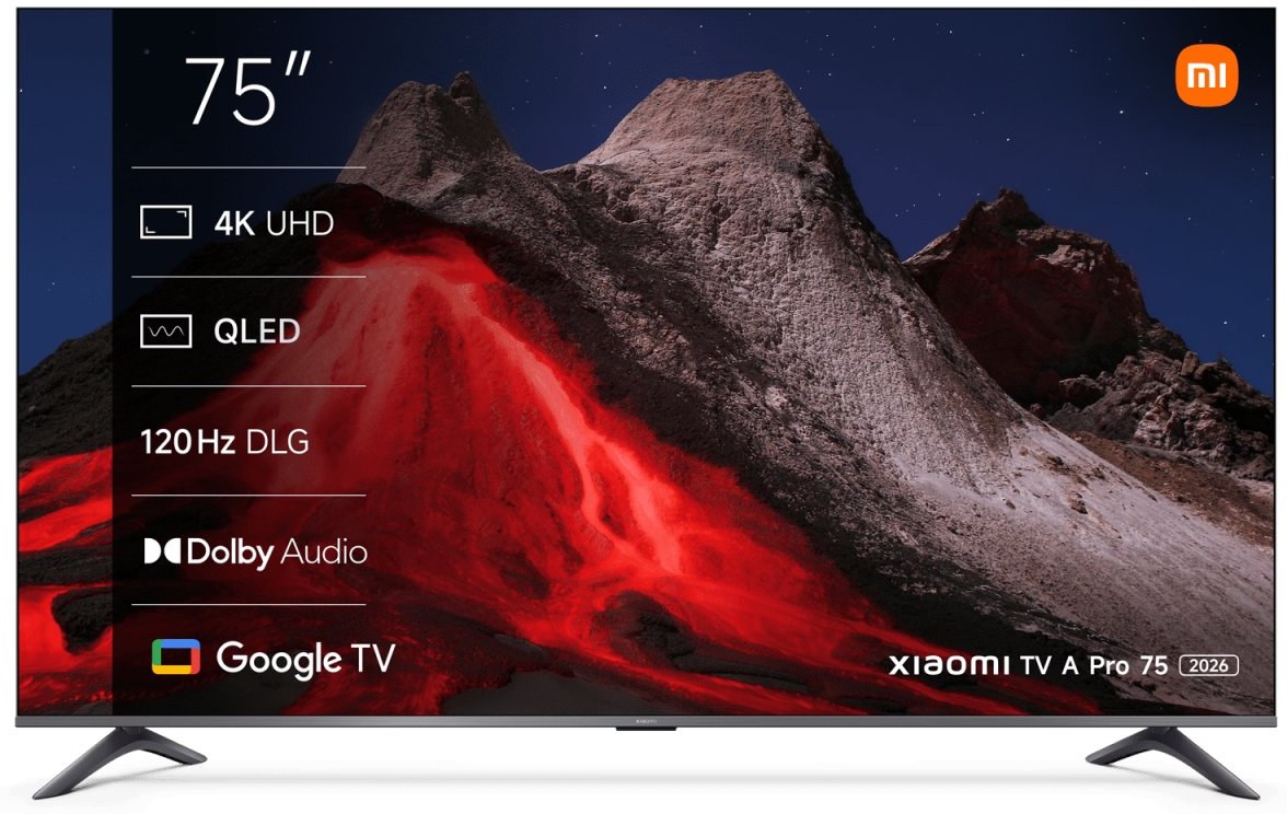 Obsah balenia: Xiaomi TV A Pro 75 (2026), diaľkový ovládač, napájací kábel, sada skrutiek, záručný list, stojan, návod