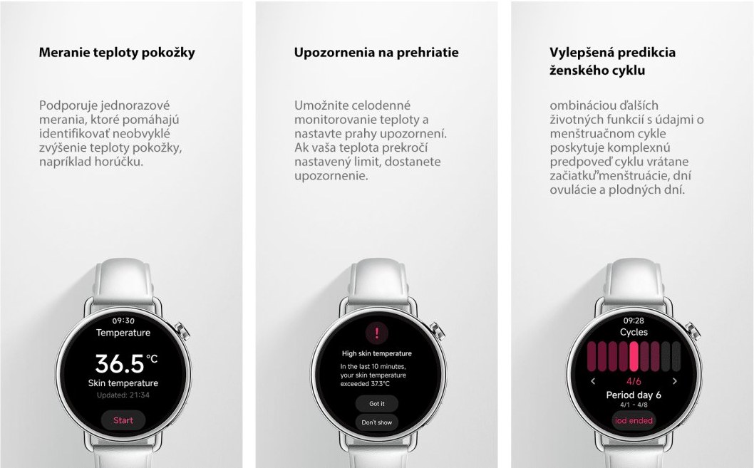 Hodinky presne sledujú a analyzujú váš spánok. Navyše sme nadviazali partnerstvo s medzinárodnými odborníkmi na spánok, aby sme vám poskytli odporúčania na mieru, ktoré vám pomôžu ďalej zlepšiť kvalitu vášho spánku.Monitorovanie teploty pokožky